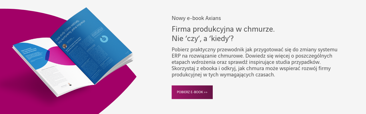 Aby poznać szczegóły i możliwości jakie dają nowoczesne systemy ERP w modelu chmurowym, zapraszamy do lektury e-booka Axians IT Poland „Firma produkcyjna w chmurze. Nie ‘czy’, a ‘kiedy’?”, który powstał przy współpracy z firmą Infor.