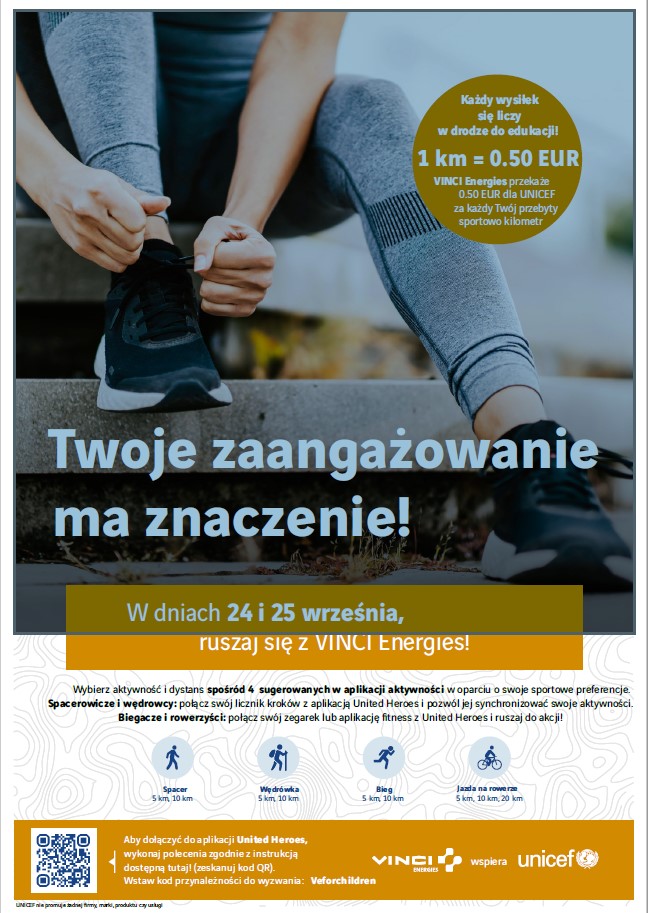 Za aktywność uczestników (każdy przebyty kilometr) VINCI Energies przekazało UNICEF 50 eurocentów.