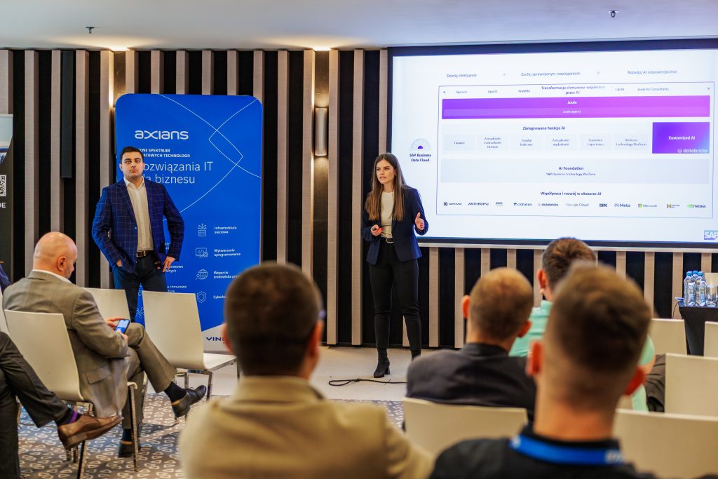 Część merytoryczną otworzyli przedstawiciele firm Axians i SAP – Patryk Borzęcki, Dyrektor Generalny BU SAP w Axians i Adam Adamczyk, Head of SAP Supply Chain Management CEE wprowadzając uczestników w tematykę wydarzenia.
